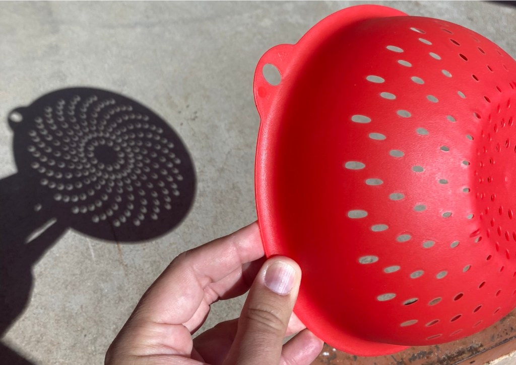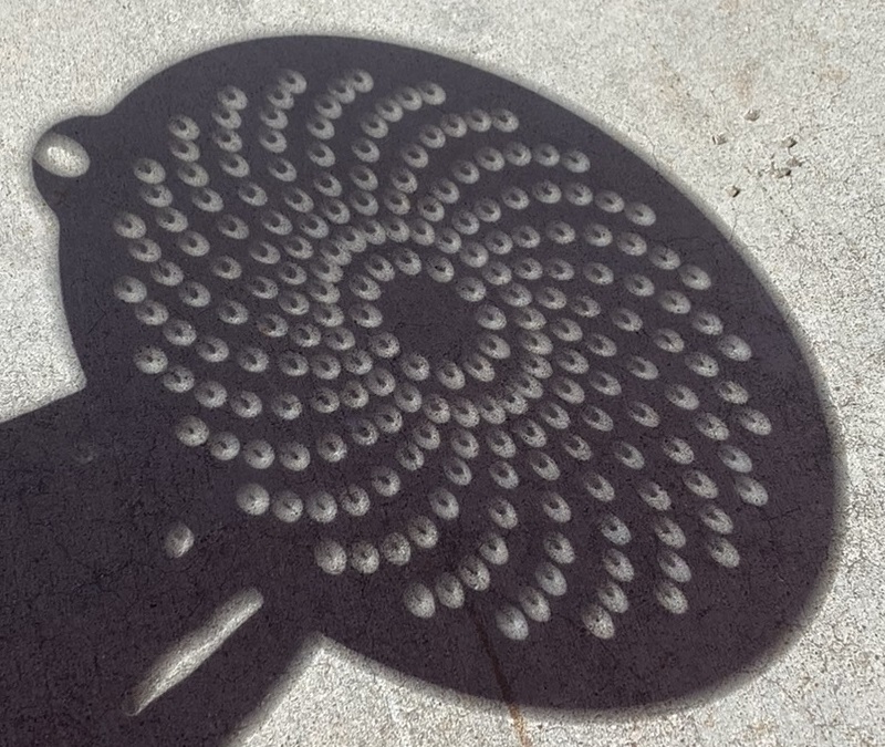 11:22 AM local time (CST) – spirals of eclipsing suns seen through a colander.