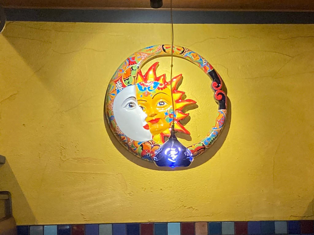 Once the sun had set that evening, we had dinner at a restaurant called Miguel’s. The art on the wall seemed apt.