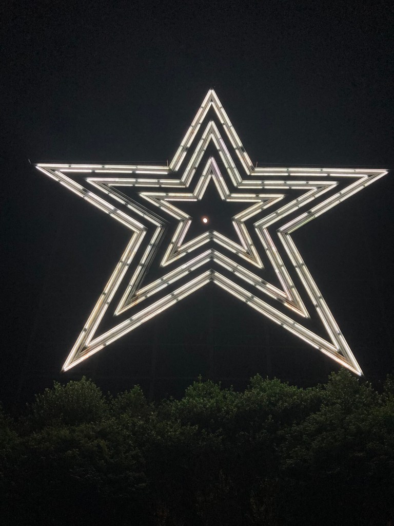 Perhaps the best time to see the Mill Mountain Star in Roanoke, Virginia, is when there’s a full moon directly behind it.