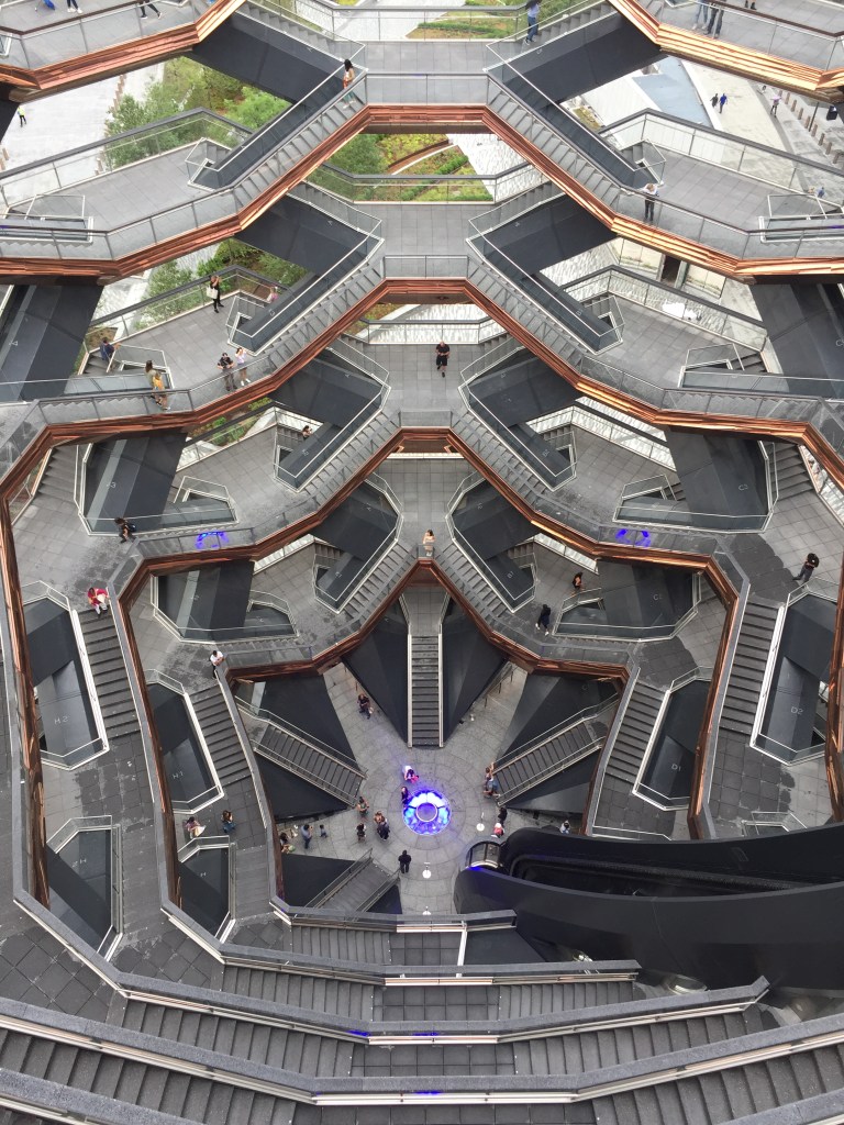A view from the top of The Vessel, a piece of walkable architecture in Hudson Yards, New York City.