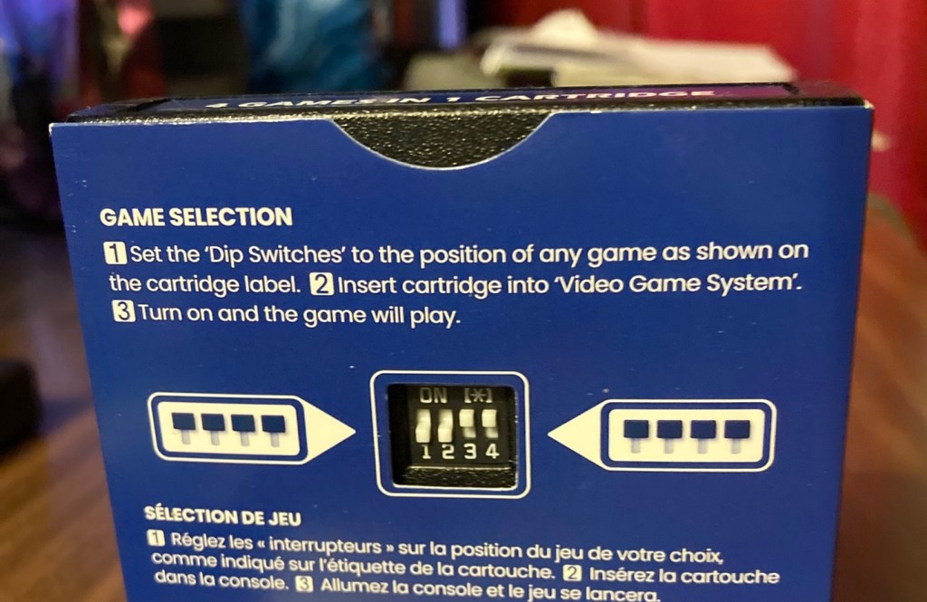 Putting DIP switches on the 10-in-1 and 4-in-1 multicarts was an interesting choice, given that they weren’t really part of the (official) cartridge experience back in the day. I remember having to fiddle with DIP switches to configure the printer for my Apple //c, but the closest thing to a DIP switch on the original Atari was the switch on the bottom of the console that let you choose between sending your game to the television over channel 2 or 3.