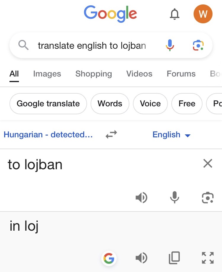 Why did it assume I speaking Hungarian? Does the word “Lojban” resemble a Hungarian word? Or did Google know that I was planning a Green Acres translation, and, knowing that both the show’s star, Eva Gabor, and her character were Hungarian, use that fact in its language prediction?